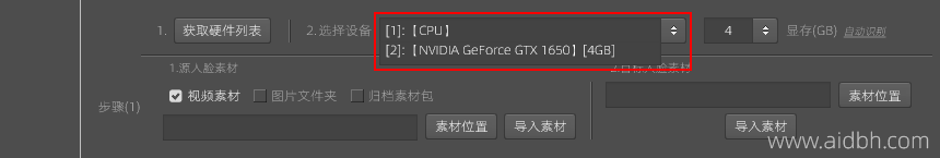 注:电脑设备有独立显卡优先选择【显卡】,电脑设备没有独立显卡则选择【CPU】。