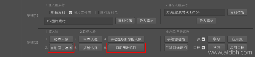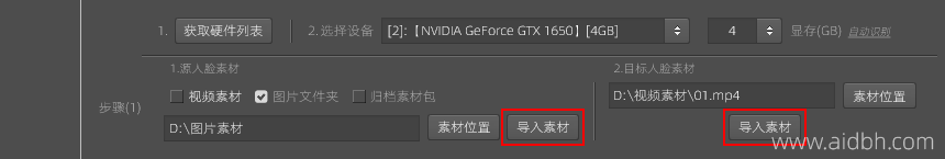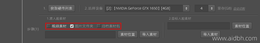 注:如果目标素材是图片,则需要把图片放在文件夹里面,【素材位置】选择文件夹,点击【导入素材】。